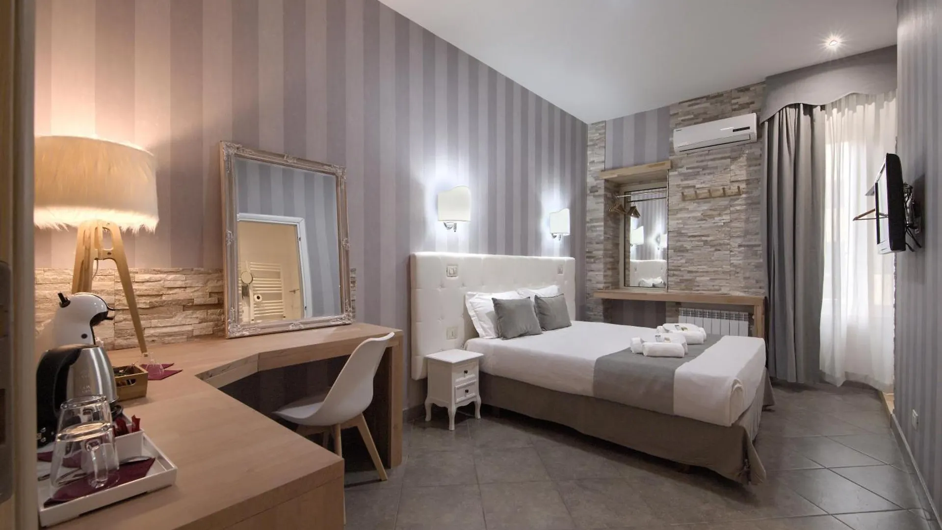 El Vatican Treasure Roma cuenta con las habitaciones aptas para alérgicos equipadas con climatizador, así como con TV de pantalla plana con canales vía satélite. Se amueblan con ventanas insonorizadas, además del mobiliario elegante. Las instalaciones en el baño incluyen un bidé, un inodoro separado y ducha, además de comodidades como secadores de pelo y toallas de baño.